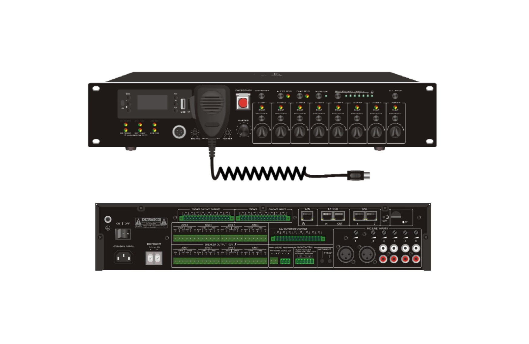 Amply cho PA System có thể là thiết bị độc lập, hoặc được tích hợp với bộ trộn Mixer, bộ chọn vùng Zone Selector.
