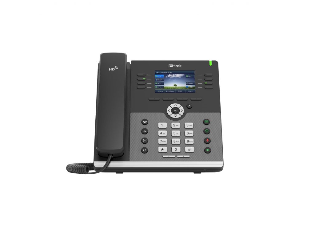 Điện thoại VoIP Wifi HTEK UC924E là điện thoại để bàn IP hỗ trợ kết nối Wifi tần số 2.4GHz và 2 cổng mạng Gigabit/PoE cho các cuộc đàm thoại VoIP. Điện thoại IP HTEK UC924E tích hợp màn hình màu Color LCD kích thước lớn 3,5 ”TFT-LCD với 480 * 320 pixel, 12 tài khoản SIP, hỗ trợ hội nghị 5 chiều, loa ngoài công suất lớn chất lượng HD Voice mang đến cho người dùng trải nghiệm âm thanh và hình ảnh sống động như thật. Điện thoại VoIP UC924E được tối ưu hóa để sử dụng trong điều hành cho những người ra quyết định chính, trợ lý hành chính và những người làm việc với ứng dụng tốn nhiều băng thông trên PC được sắp xếp.